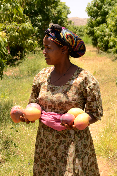 Haregwa Gobezay har förvandlat en stenig ravin till en grönskande fruktträdgård med 6 700 mangoträd. Hon är en av de etiopiska bönderna inom Tigrayprojektet som vänt jordförstöring och svält till bördighet och stärkt biologisk mångfald. Modellen är smart ekologiskt jordbruk där småbönderna själva spelar huvudrollen.